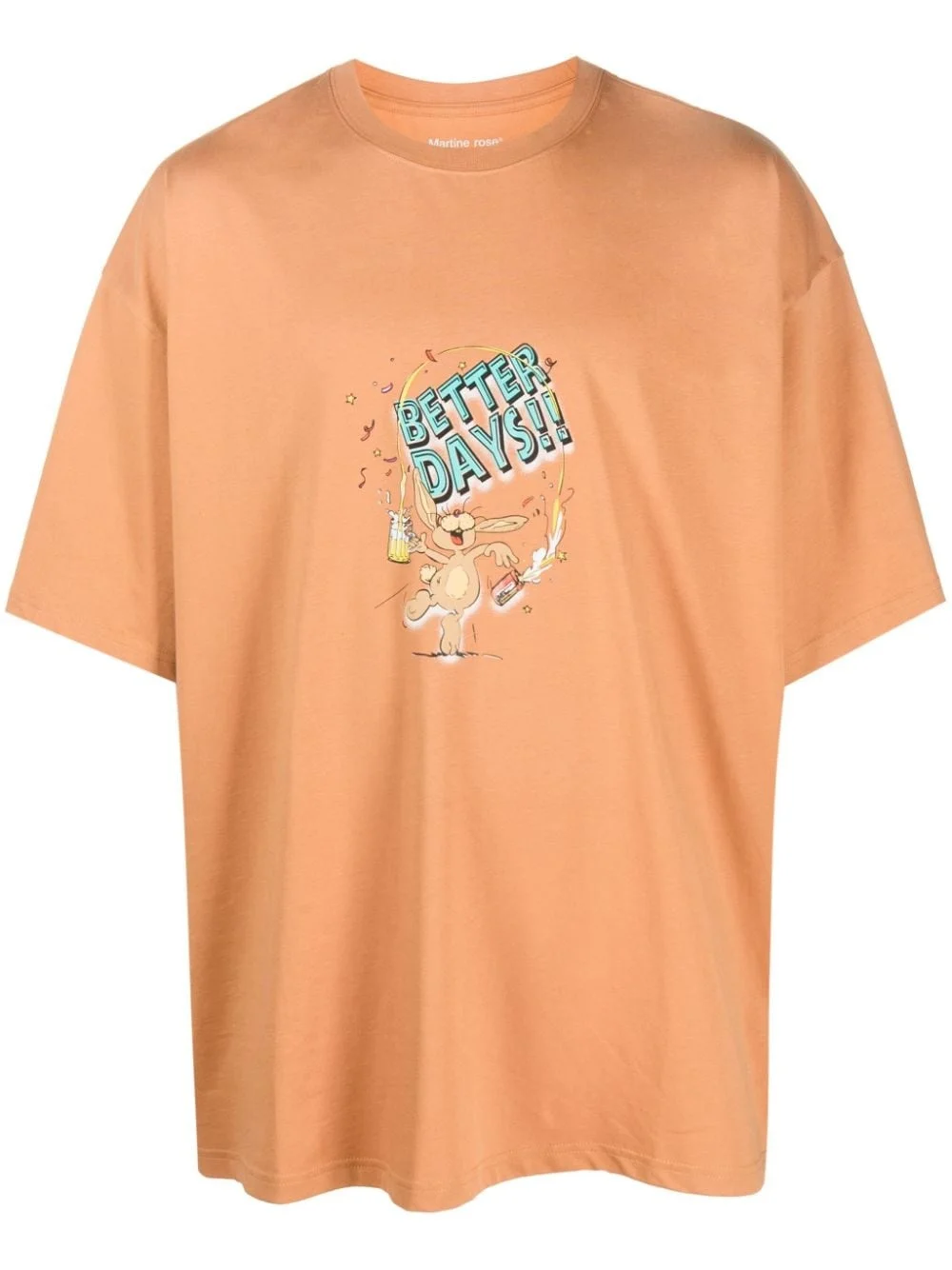Better Days-print cotton T-shirt Cut in Portugal from soft cotton to a drop shoulder relaxed silhouette, this terracotta orange T-shirt from Martise Rose is emblazoned with a seasonal Happy Days graphic print across its front – a nod to the brand's play with colourways and motifs. Highlights - Terracotta orange/multicolour - Cotton - Graphic print to the front - Round neck - Short sleeves - Straight hem Imported Composition Cotton 100% SIZE & FIT Model measurements Height 6 ft 2 in(1.88 m) Bust/Chest 36.61 in(93 cm) Hips 35.82 in(91 cm) Waist 27.95 in(71 cm) FittingInformation Designed to be unstructured, offering a loose fit throughout Made from a midweight non-stretch fabric, this piece offers minimal elasticity when worn This piece fits true to size – take your usual size