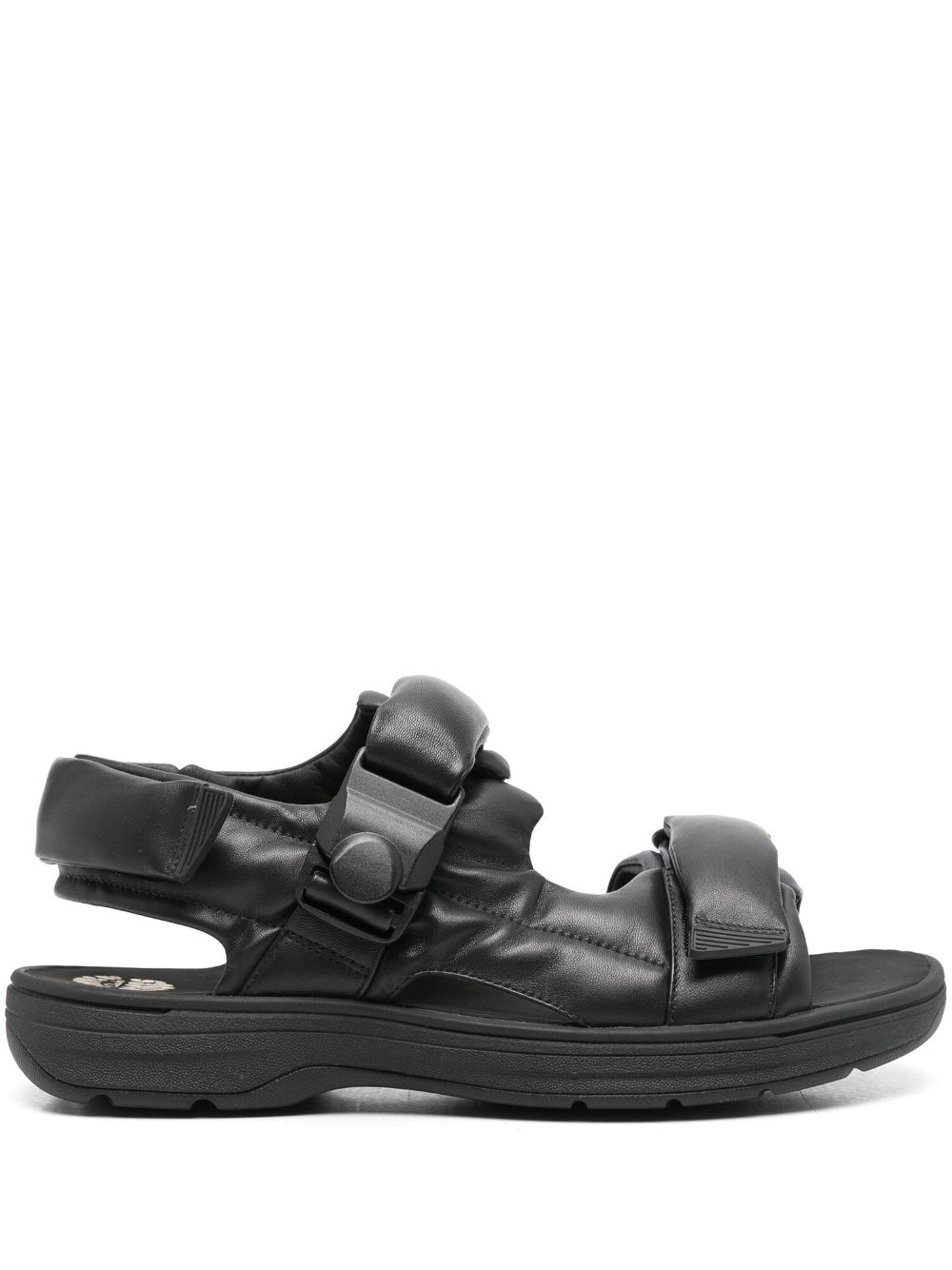 x Clarks leather sandals Highlights - Black - Calf leather - Tonal design - Padded design - Round open toe - Front touch-strap fastening - Front magnetic strap fastening - Rear touch-strap fastening - Branded footbed - Chunky rubber sole Imported Composition Lining: Polyurethane 100%, Calf Leather 100% Outer: Calf Leather 100% Sole: Rubber 100% SIZE & FIT Measurement HEEL 1.37 in(3.5 cm) Sole height 0.78 in(2 cm)