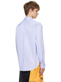 Cotton poplin shirt. · Stripes throughout · Spread collar · Button closure · Logo patch at front · Shirttail hem · Buttoned barrel cuffs · Box pleat at back yoke Supplier color: Blue stripe 100% cotton. Made in Portugal 252892M192017