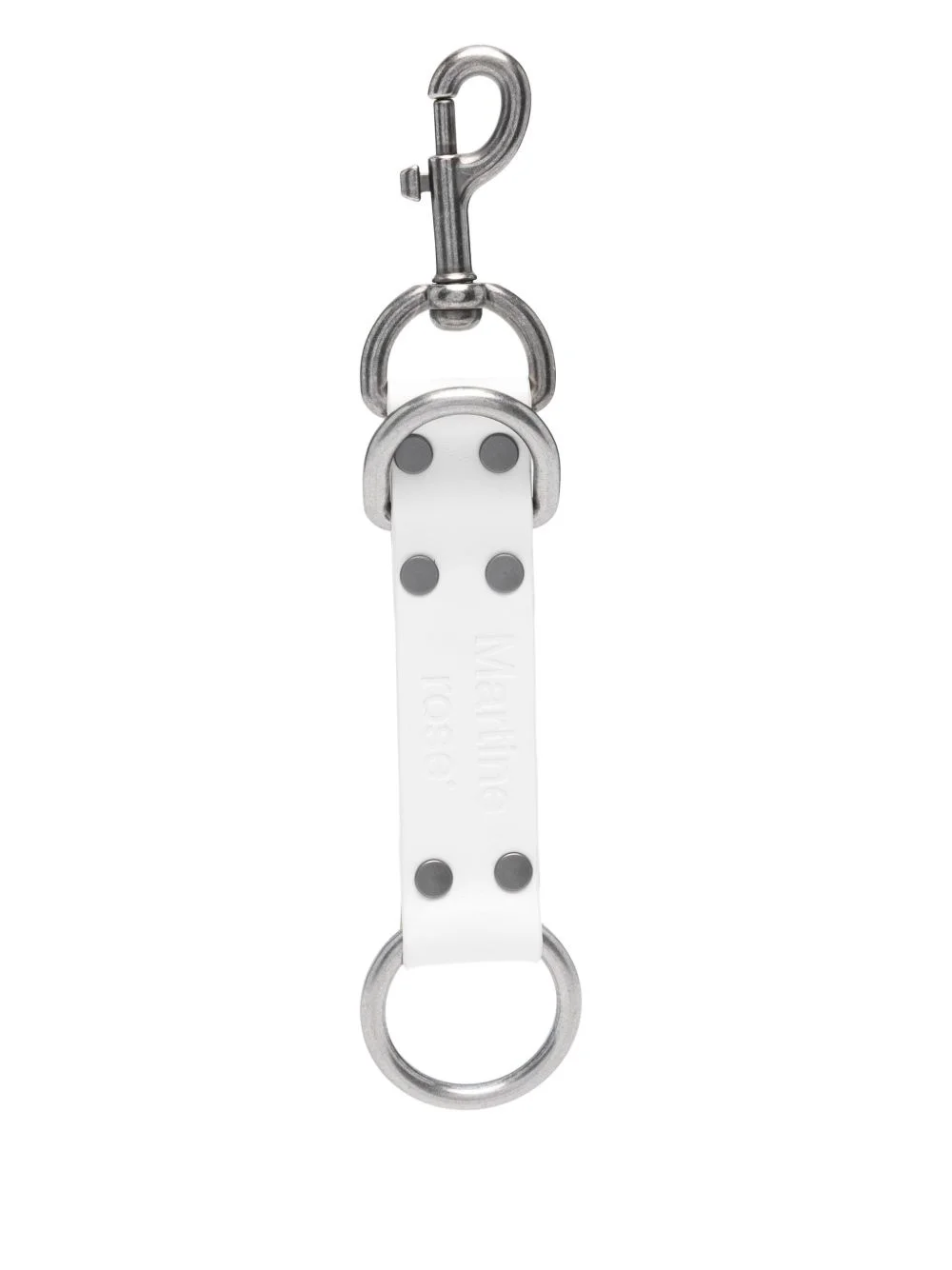 Bondage keychain Highlights - White - Lobster claw fastening - Debossed logo to the front - Stud embellishment - Ring hardware detailing Made in United Kingdom Composition Leather 100% SIZE & FIT Measurement LENGTH 9.05 in(23 cm) WIDTH 1.18 in(3 cm)