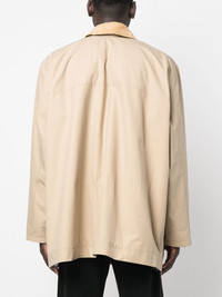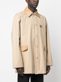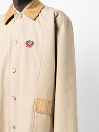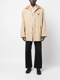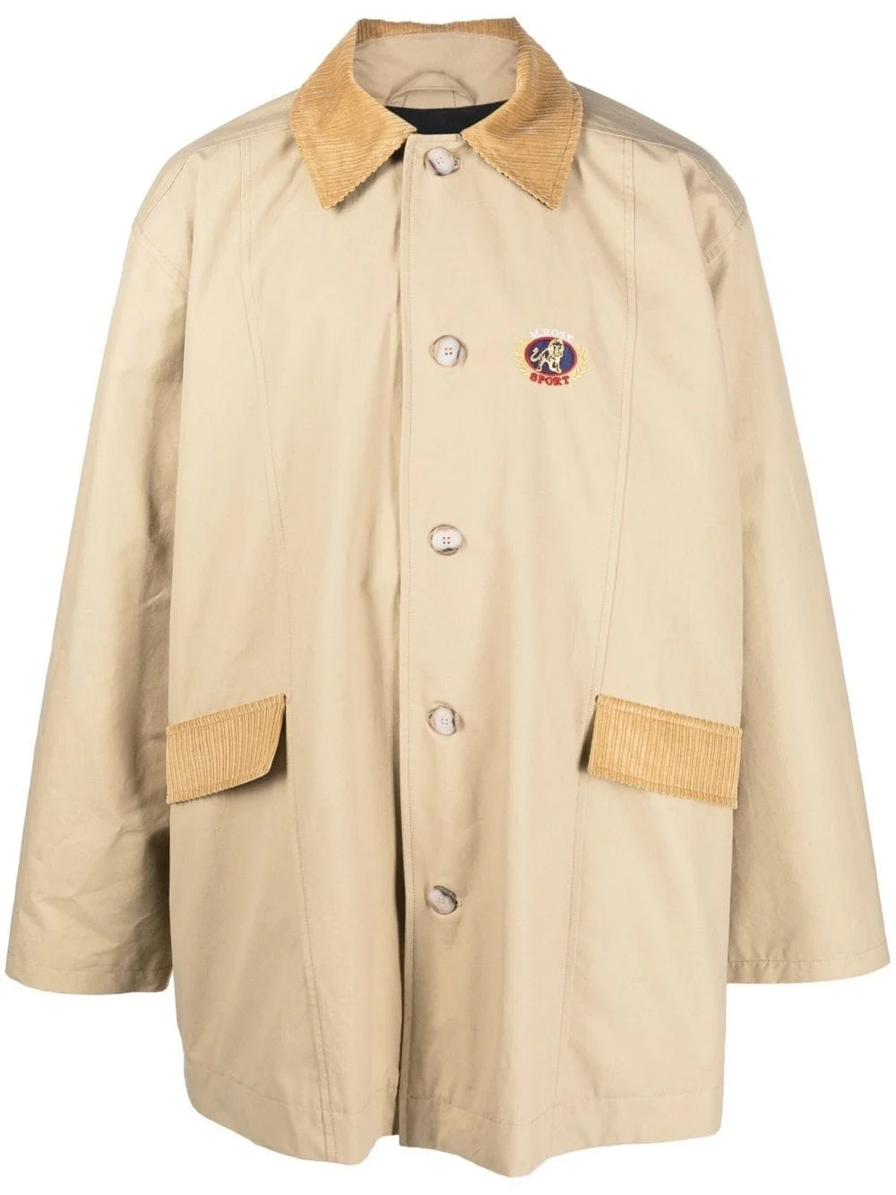 corduroy-trims buttoned trench coat Inspired by classic British riding styles, this Martine Rose trench coat is adorned with corduroy trims at the collar and pockets. The beige design is sustainably crafted from TENCEL™ Lyocell, and finished with a retro-inspired logo embroidered on the chest. Imported Composition Lining: Cotton 100% Outer: TENCEL™ Lyocell (LENZING) 100%, Cotton 100% SIZE & FIT Model measurements Height 6 ft 2 in(1.87 m) Bust/Chest 36.41 in(92.5 cm) Hips 37 in(94 cm) Waist 29.52 in(75 cm) FittingInformation This piece fits true to size. We recommend you get your regular size Cut for a loose fit Made with a mid-weight non-stretch fabric Washing instructions Machine Wash