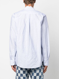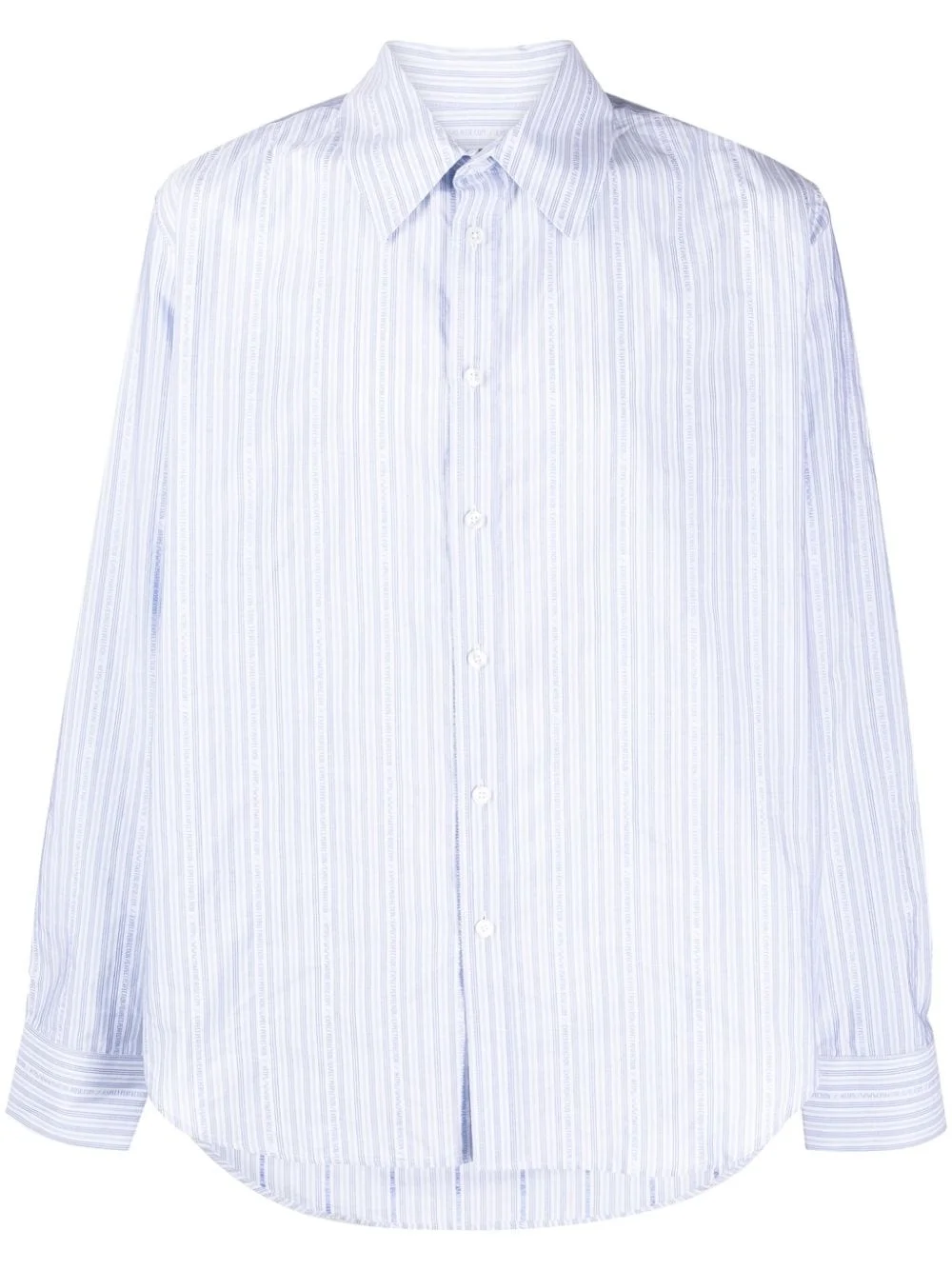 striped logo-print cotton shirt Martine Rose puts a branded twist on the timeless stripes of this cotton-poplin shirt – look closely and you’ll notice the brand’s website and an ‘expect perfection’ slogan printed between the lines. Highlights - Blue/white - Cotton - Poplin texture - Vertical stripe print - All-over logo print - Slogan print - Classic collar - Front button fastening - Long sleeves - Curved hem Imported Composition Cotton 100% SIZE & FIT Model measurements Height 6 ft 1 in(1.85 m) Bust/Chest 35.43 in(90 cm) Hips 35.82 in(91 cm) Waist 27.55 in(70 cm) FittingInformation Designed for a relaxed fit, this piece allows for comfort and movement when worn Made from a midweight non-stretch fabric This piece fits true to size – take your usual size Washing instructions Machine Wash