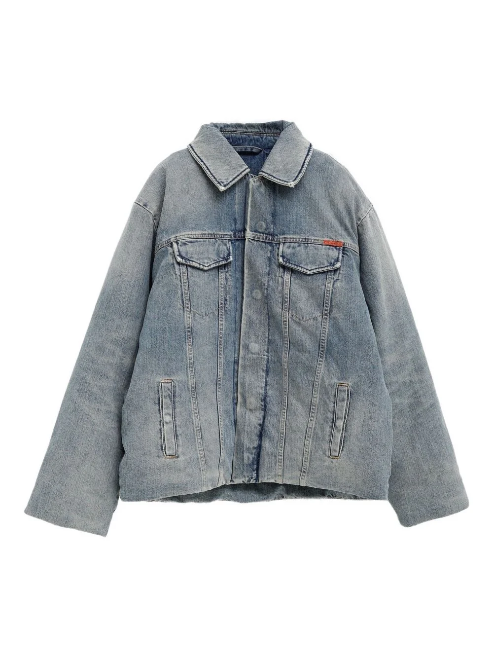 denim jacket Highlights - Blue - Front button fastening - Chest flap pockets - Long sleeves - Side slit pockets Made in Italy Composition Fabric 100% Washing instructions Read Manufacturer Guidelines