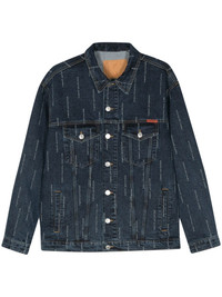 embroidered-slogan denim jacket Highlights - Navy blue - Cotton - Denim - Mid wash - Embroidered slogan - Classic collar - Mini logo tag - Two button-fastening chest pockets - Drop shoulder - Long sleeves - Buttoned cuffs - Two side welt pockets - Decorative-button waist tabs - Straight hem - Unlined - Front button fastening Made in Italy Composition Cotton 100%