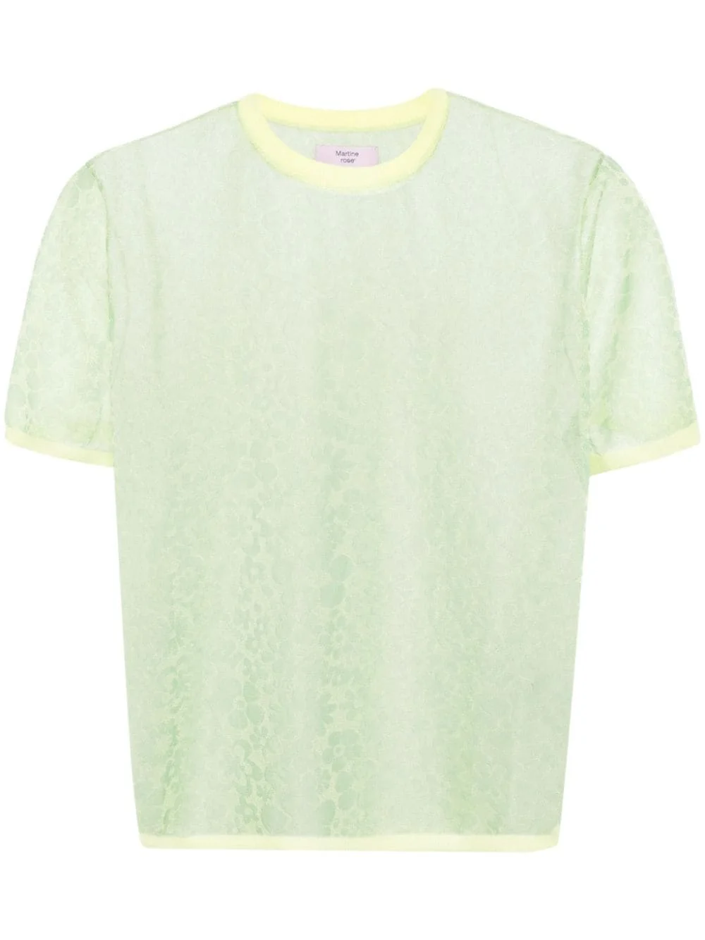 Granny patterned-jacquard T-shirt Highlights - Lime green - Soft jersey - Knitted construction - Ribbed trim - Floral - Patterned jacquard - Jacquard logo motif - Round neck - Short sleeves - Straight hem - Unlined Imported Composition Nylon 62%, Polyester 38% SIZE & FIT Model measurements Height 6 ft 2 in(1.87 m) Bust/Chest 37.79 in(96 cm) Hips 37.79 in(96 cm) Waist 30.31 in(77 cm) FittingInformation Designed to be unstructured, offering a loose fit throughout Made with a fine knit, this piece offers some stretch This piece fits true to size – take your usual size