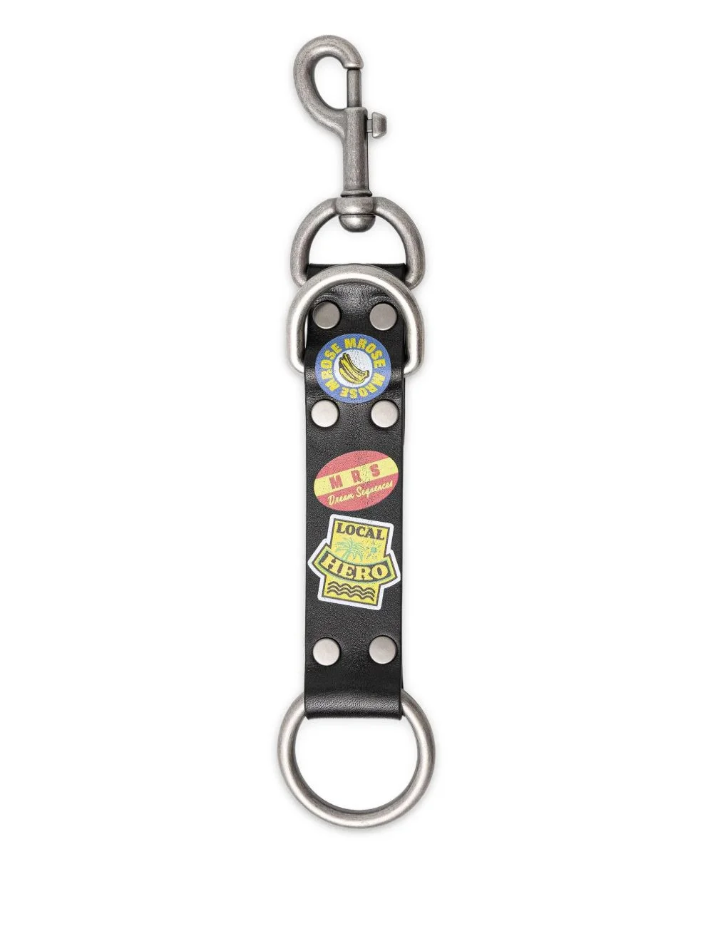graphic-patches leather keyring Highlights - Black - Leather - Silver-tone metal clasp - Multiple graphic patches Imported Composition Calf Leather 100%