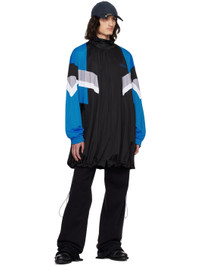 Polyester fleece jacket. · Paneled construction · Stand collar · Zip closure · Logo embroidered at chest · Zip pockets · Concealed bungee-style drawstring at hem · Raglan sleeves · Elasticized cuffs · Logo embroidered at back Supplier color: Black/Blue/Grey