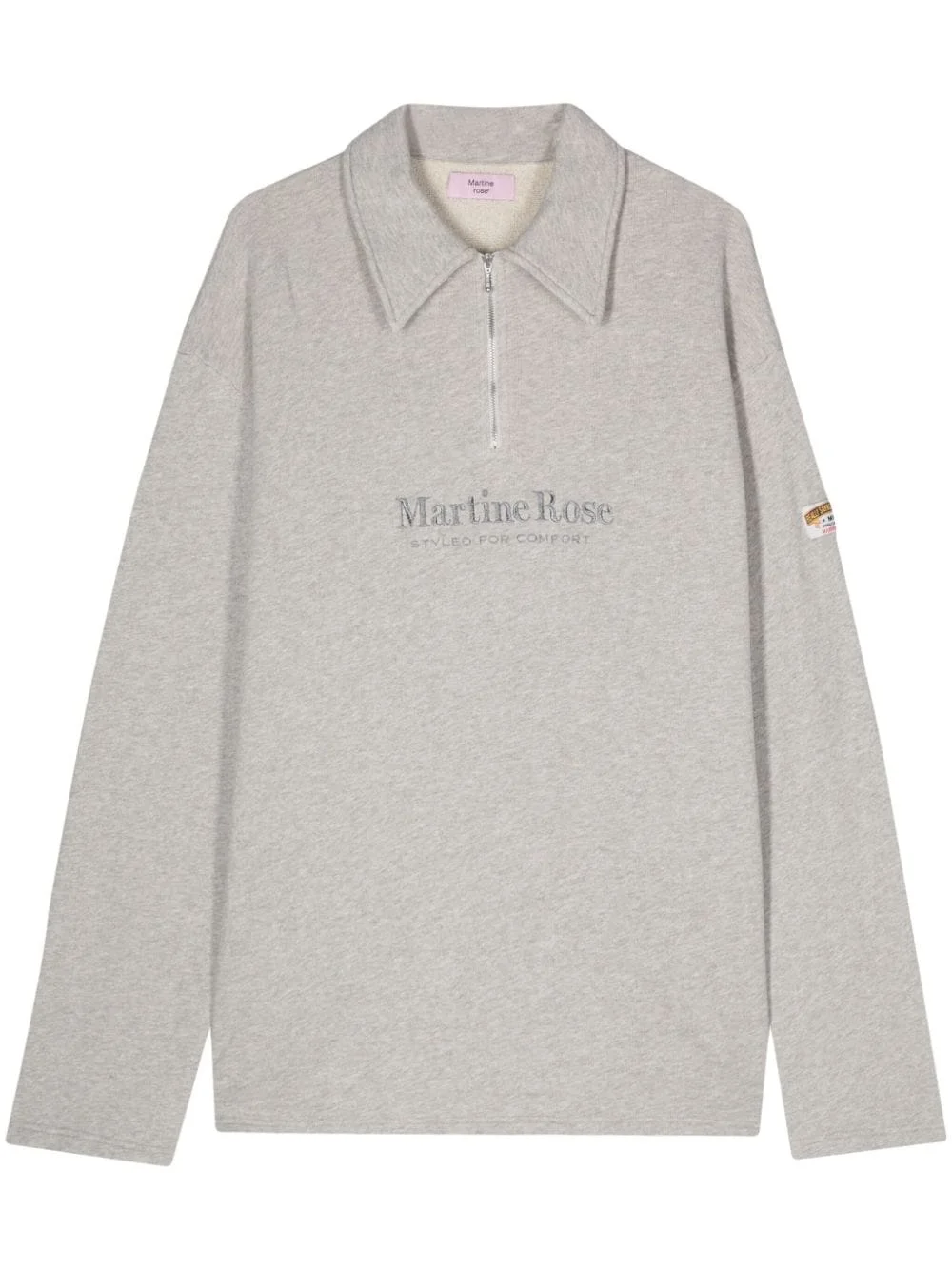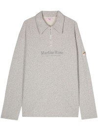 logo-embroidered cotton polo shirt Highlights - Light grey - Cotton - Jersey texture - Melange effect - Polo collar - Drop shoulder - Long sleeves - Logo patch at the sleeve - Half front zip fastening - Embroidered logo to the front - Short side slits - Straight hem Imported Composition Cotton 100% Washing instructions Machine Wash