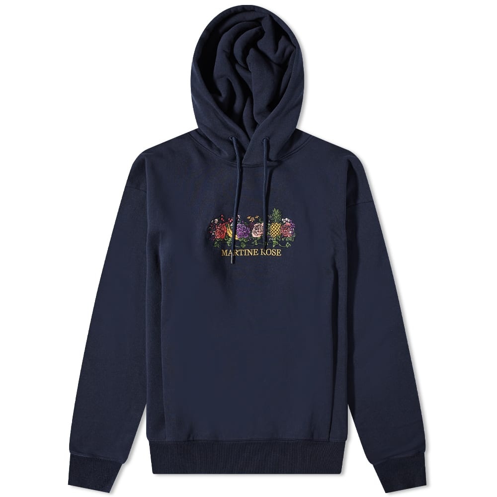First established in 2007, Martine Rose is a British menswear label. Taking inspiration from the 90s, this fruit logo hoody is a classic style with the brand’s logo embroidered on the front. On top of the logo is an embroidered display of flowers and fruits. - 100% Cotton - Adjustable Drawstring Hood - Dropped Shoulders - Front Pouch Pocket - Ribbed Trims - Embroidered Graphics - Embroidered Branding