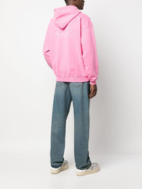 logo-print cotton hoodie A playful take on a wardrobe staple, this Martine Rose bright pink cotton hoodie is printed with the label's signature scribble logo on the back in contrasting white. Highlights - Flamingo pink - Cotton - Logo print to the rear - Drawstring hood - Drop shoulder - Long sleeves - Straight hem Imported Composition Cotton 100% SIZE & FIT Model measurements Height 6 ft 2 in(1.89 m) Bust/Chest 39.76 in(101 cm) Hips 37.4 in(95 cm) Waist 29.92 in(76 cm) FittingInformation Designed to be unstructured, offering a loose fit throughout The adjustable drawstring means that you can adjust this piece’s fit to suit your comfort and preference Made from a midweight non-stretch fabric, this piece offers minimal elasticity when worn This piece fits true to size – take your usual size Washing instructions Machine Wash