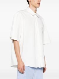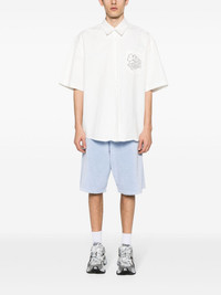 logo-print cotton shirt Highlights - Off-shoulder - Cotton - Twill weave - Floral and logo print at the chest and rear - Straight-point collar - Front button fastening - Drop shoulder - Half-length sleeves - Chest patch pocket - Curved hem Imported Composition Cotton 100% SIZE & FIT Model measurements Height 6 ft 2 in(1.87 m) Bust/Chest 36.41 in(92.5 cm) Hips 35.43 in(90 cm) Waist 29.52 in(75 cm) FittingInformation Designed for an oversized fit, offering additional room throughout Made from a midweight non-stretch fabric This piece fits true to size – take your usual size Washing instructions Machine Wash