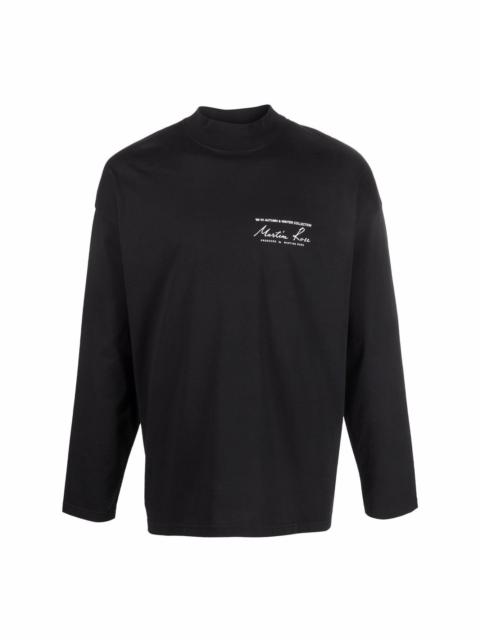 logo-print long-sleeve T-shirt Taking a pared-back approach, Martine Rose introduces this tee. Made from white cotton, it is simply detailed with a logo print to the front. Imported Composition Cotton 100% SIZE & FIT Model measurements Height 6 ft 2 in(1.87 m) Bust/Chest 36.41 in(92.5 cm) Hips 35.43 in(90 cm) Waist 29.52 in(75 cm) FittingInformation This piece fits true to size. We recommend you get your regular size Cut for a relaxed fit Made with a mid-weight fabric Washing instructions Machine Wash