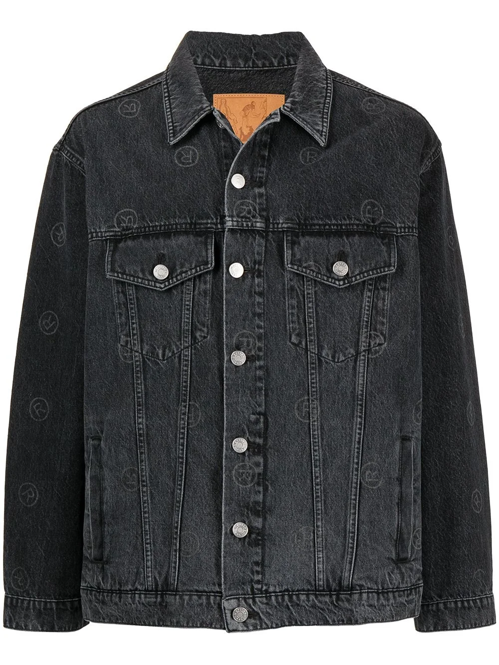 logo-print denim jacket Martine Rose transforms this denim jacket with a branding detail. Crafted from cotton in a black hue, this layering piece is fully adorned with a logo print. Made in Italy Composition Cotton 100% SIZE & FIT Model measurements Height 5 ft 11 in(1.8 m) Bust/Chest 28.34 in(72 cm) Hips 35.43 in(90 cm) Waist 23.62 in(60 cm) FittingInformation This piece is unisex. Please take care when selecting your size Designed for a loose fit for men and an oversized fit for women Made with a mid-weight fabric Washing instructions Dry Clean Only