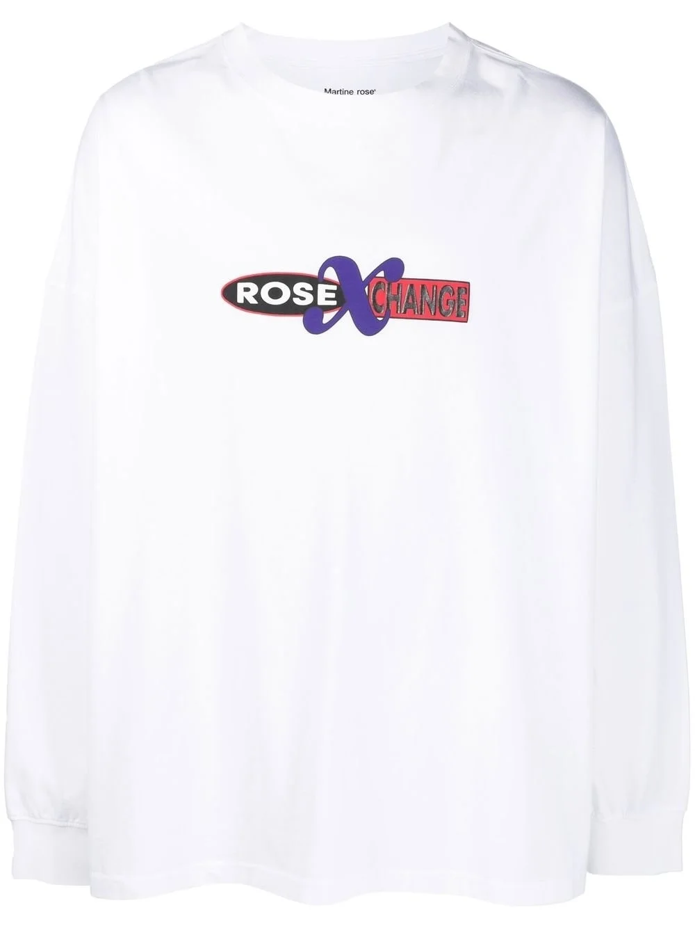 logo-print long-sleeve cotton T-shirt British designer Martine Rose presents this long-sleeved T-shirt from SS23. Crafted from soft, white cotton, colourful contrasting branding pops at the chest giving the casual silhouette a distinctive look. Imported Composition Cotton 100% SIZE & FIT Model measurements Height 6 ft 2 in(1.88 m) Bust/Chest 36.61 in(93 cm) Hips 37.79 in(96 cm) Waist 28.74 in(73 cm) FittingInformation This piece fits true to size. We recommend you get your regular size Cut for a loose fit Made with a mid-weight fabric Washing instructions Machine Wash