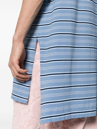 logo-print striped T-shirt Highlights - Blue - Cotton - Jersey texture - Logo print to the front - Horizontal stripe pattern - Polo collar - Front button placket - Drop shoulder - Short sleeves - Side slits - Straight hem Imported Composition Lining: Cotton 100% SIZE & FIT Model measurements Height 6 ft 2 in(1.87 m) Bust/Chest 36.41 in(92.5 cm) Hips 35.43 in(90 cm) Waist 29.52 in(75 cm) FittingInformation Designed for an oversized fit, this polo shirt offers additional room throughout Made from a midweight non-stretch fabric, this piece offers minimal elasticity when worn This piece fits true to size – take your usual size Washing instructions Machine Wash
