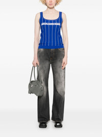 logo-print vest Highlights - Royal blue - Square neck - Sleeveless - Ribbed cuffs and hem - When buying this unisex item, keep in mind that it is graded in standard men's sizing. Imported Composition Viscose 79%, Polyester 21% SIZE & FIT Model measurements Height 5 ft 9 in(1.75 m) Bust/Chest 34.64 in(88 cm) Hips 36.61 in(93 cm) Waist 26.37 in(67 cm) FittingInformation This unisex piece is designed for a close fit whether you usually select women's or men's sizes Made with a lightweight knit, this piece offers some stretch
