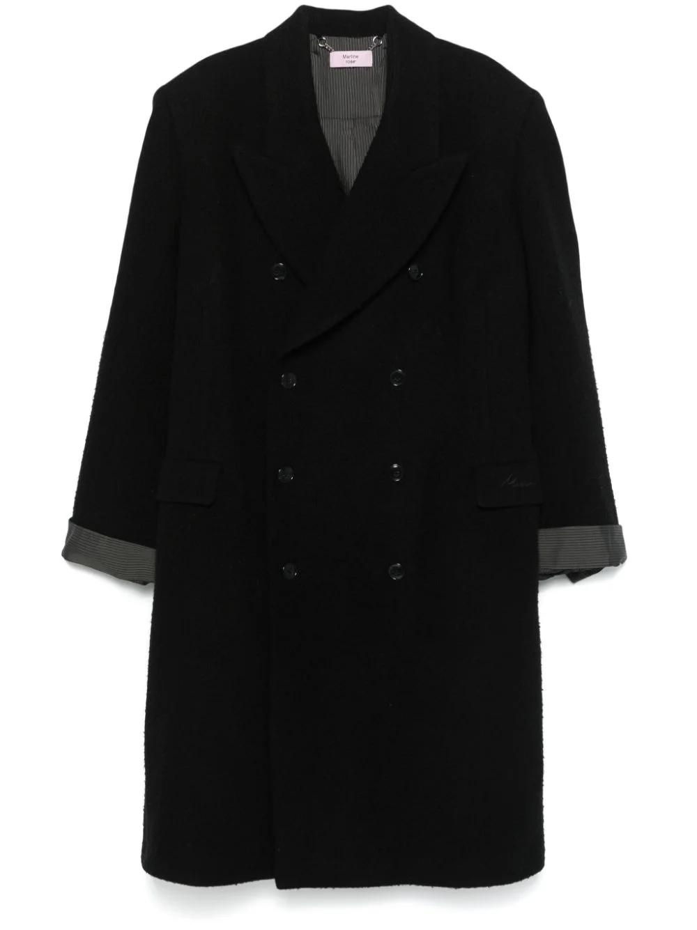 pilled-finish coat Highlights - Black - Double-breasted button fastening - Peak lapels - Two side flap pockets - When buying this unisex item, keep in mind that it is graded in standard men's sizing. Made in Italy Composition Outer: Wool 100%, Acetate 50%, Cupro 50% Lining: Viscose 100% SIZE & FIT FittingInformation This unisex piece is designed for an oversized fit whether you usually select women's or men's sizes The internal shoulder pads offer a structured shape Made from a midweight non-stretch fabric