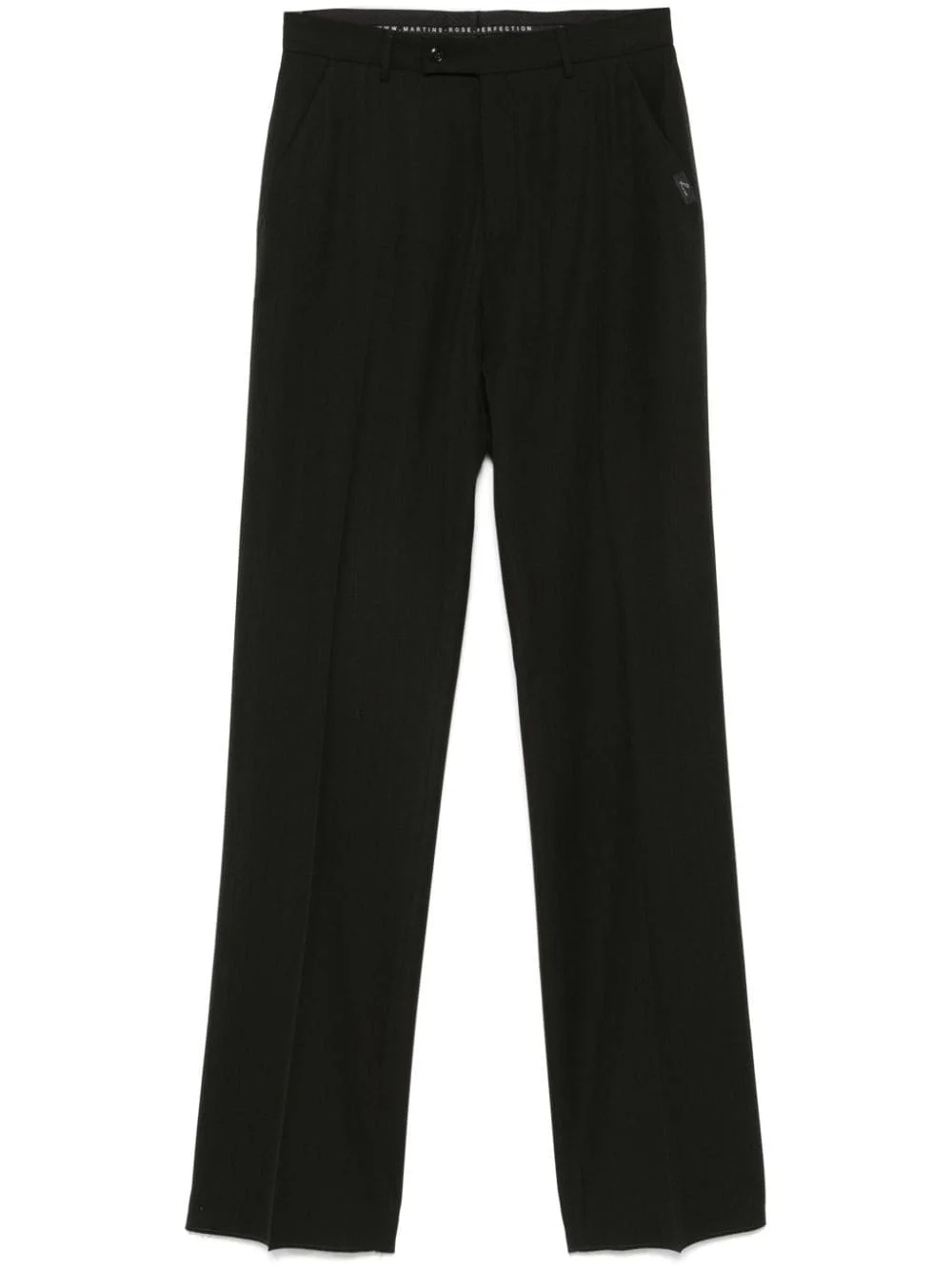 pinstriped tailored trousers Highlights - Black - Wool blend - Gabardine weave - Concealed fly and button fastening - Belt loops - Pinstripe pattern - Mid-rise - Pressed crease - Mini logo tag - Two side slash pockets - Rear flap pocket - Tapered leg Made in Italy Composition Outer: Wool 52%, Viscose 48% Lining: Viscose 100%