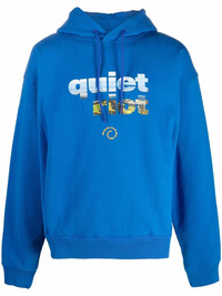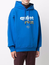 Quiet Riot hoodie blue cotton ribbed detailing logo print to the front classic hood long sleeves straight hem Imported Composition Cotton 100% SIZE & FIT Model measurements Height 6 ft 1 in(1.86 m) Bust/Chest 35.43 in(90 cm) Hips 35.43 in(90 cm) Waist 29.92 in(76 cm) Washing instructions Machine Wash