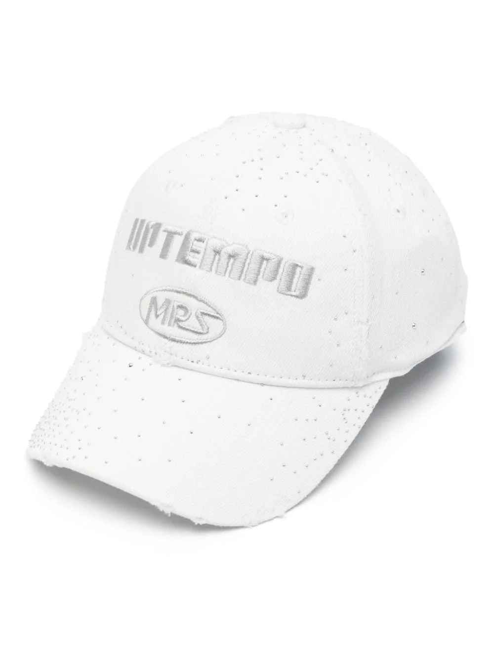 Rolled distressed cap Highlights - White - Cotton - Twill weave - Distressed effect - Silver-tone stud embellishment - Six-panel construction - Fabric-covered button at the crown - Eyelet detailing - Embroidered logo to the front - Pleat detailing to the sides - Curved peak - Unlined - Rear touch-strap fastening Imported Composition Cotton 100% SIZE & FIT Measurement BRIM 2.75 in(7 cm) CIRCUMFERENCE 21.65 in(55 cm)