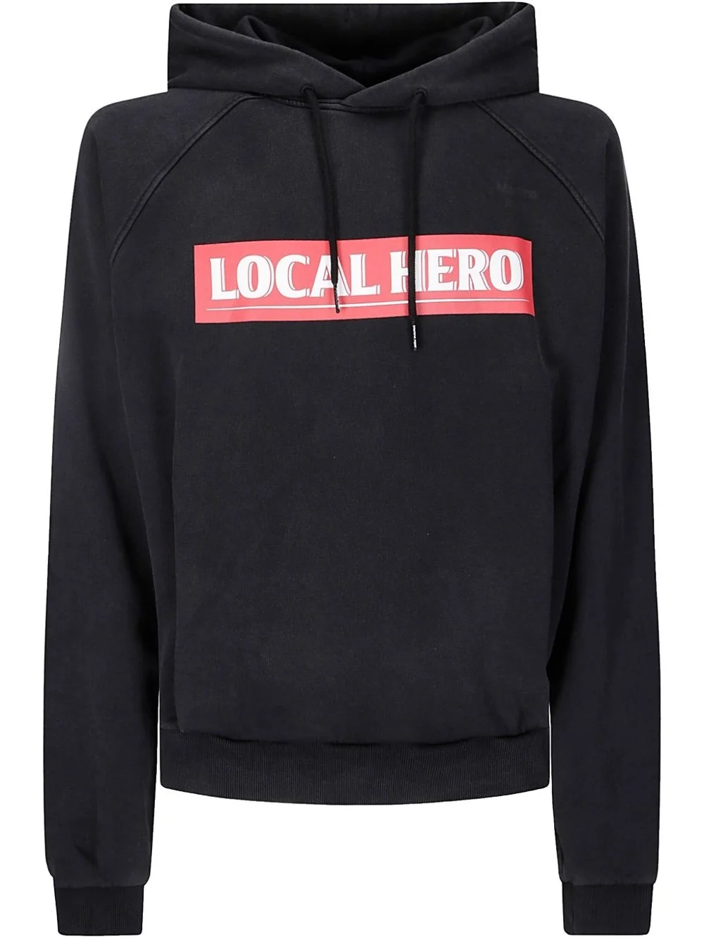 slogan-print hoodie Highlights - Black - Slogan print to the front - Slouchy drawstring hood - Long raglan sleeves Imported Composition Cotton 100%