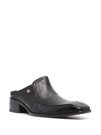 Snout leather mules Highlights - Black - Calf leather - Crinkled finish - Patent finish - Gold-tone logo plaque - Slip-on style - Square toe - Branded leather insole - Leather and rubber sole Made in Italy Composition Sole: Calf Leather 100% Lining: Calf Leather 100% Outer: Calf Leather 100% SIZE & FIT Measurement HEEL 1.49 in(3.8 cm)