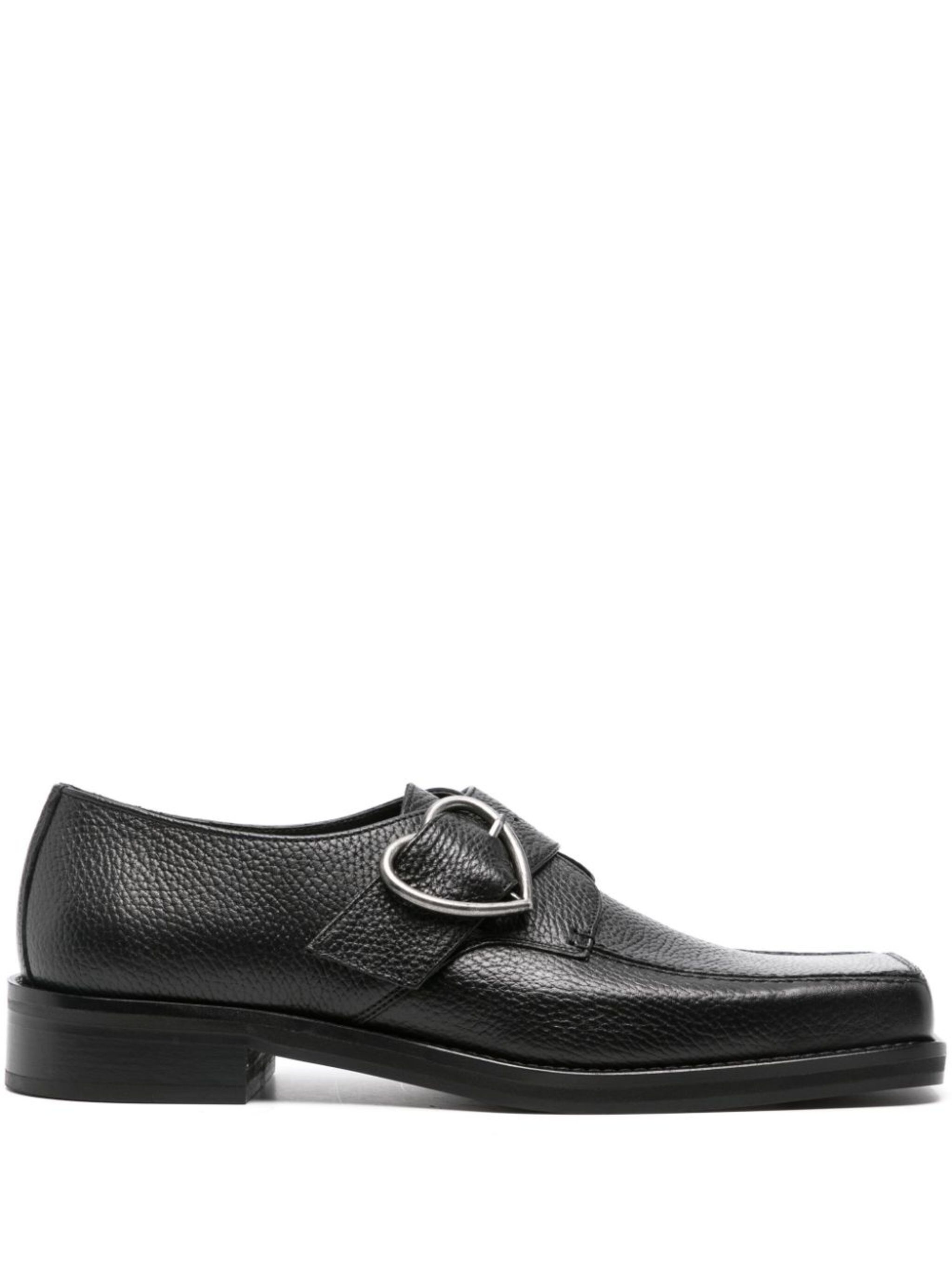 black calf leather grained texture side buckle fastening low block heel heart motif square toe branded leather insole leather sole Size & Fit Model Measurements: Bust: 0cm Height: 0cm Hips: 0cm Waist: 0cm HEEL: 3cm Sole height: 1cm Fabric and Care Designer Style ID: 1055LP07001M Designer Colour: BLACK Composition: Sole: Rubber 100%; Outer: Calf leather 100%; Lining: Calf leather 100%Made in Portugal