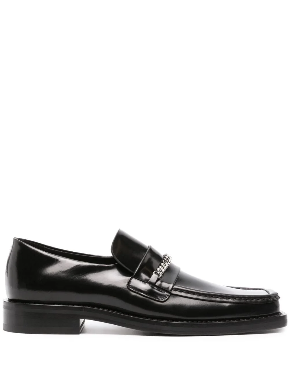 square-toe leather loafers London based brand, Martine Rose is consistently inspired by the cultural melting pot of their hometown. The experts of juxtaposition flaunt their talents in these square-toe loafers, updating a typically conservative style with a contemporary silver chain detail. Highlights - Black - Calf leather - Square toe - Chain-link detailing - Branded insole - Flat leather sole Made in Italy Composition Outer: Calf Leather 100%, Metal 100% Lining: Calf Leather 100% Sole: Calf Leather 100% SIZE & FIT Measurement HEEL 1.18 in(3 cm) Sole height 0.59 in(1.5 cm)