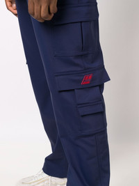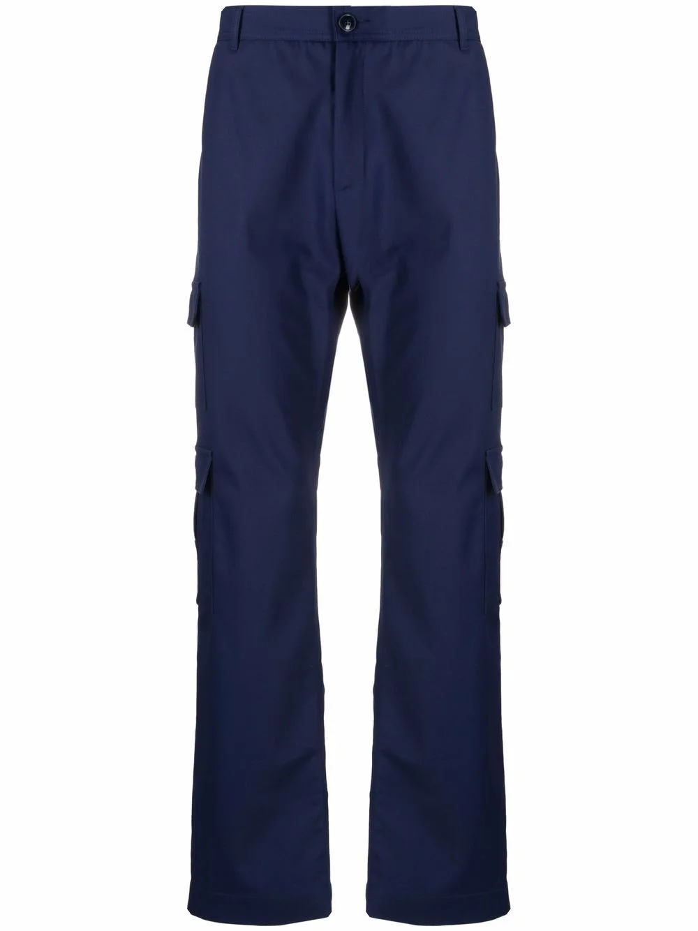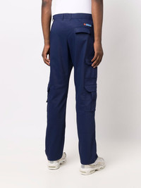 straight-leg cargo trousers blue stretch-cotton straight leg belt loops front button and zip fastening two side inset pockets two side cargo pockets rear flap pocket Made in Italy Composition Polyamide 50%, Cotton 45%, Spandex/Elastane 5% SIZE & FIT Model measurements Height 6 ft 2 in(1.89 m) Bust/Chest 35.43 in(90 cm) Hips 36.61 in(93 cm) Waist 28.74 in(73 cm) FittingInformation This piece fits true to size. We recommend you get your regular size Designed for a slim fit at the waist and loose over the leg Made with a mid-weight stretch fabric Washing instructions Hand Wash