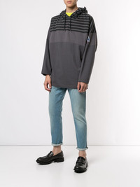 stripe detail hoodie Martine Rose's pieces reflect the label’s South London origins, with clothing that captures the dynamic energy of a community that is defined by its variety of subcultures and traditions. This grey cotton stripe detail hoodie features a drawstring hood, stripes to the chest, a logo to the left arm, stitched panels, long sleeves and a logo tag. Imported Composition Cotton 100% SIZE & FIT Model measurements Height 6 ft 0 in(1.83 m) Bust/Chest 37.79 in(96 cm) Hips 37 in(94 cm) Waist 30.31 in(77 cm) FittingInformation This piece fits true to size. We recommend you get your regular size Cut for an oversized fit Made with a mid-weight fabric Washing instructions Dry Clean Only