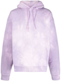 MAUVE PINK COTTON TIE DYE-PRINT COTTON HOODIE FROM MARTINE ROSE FEATURING JERSEY FLEECE, TIE-DYE PRINT, LONG SLEEVES, FITTED-CUFF SLEEVES AND DRAWSTRING HOOD.