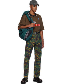 Twill tote in green and black. · Piping throughout · Adjustable self-tie shoulder strap · Logo embroidered at face · Zip pockets · Zip closure at foldover top · Mesh lining · H14.5" x W14" Supplier color: Green/Teal