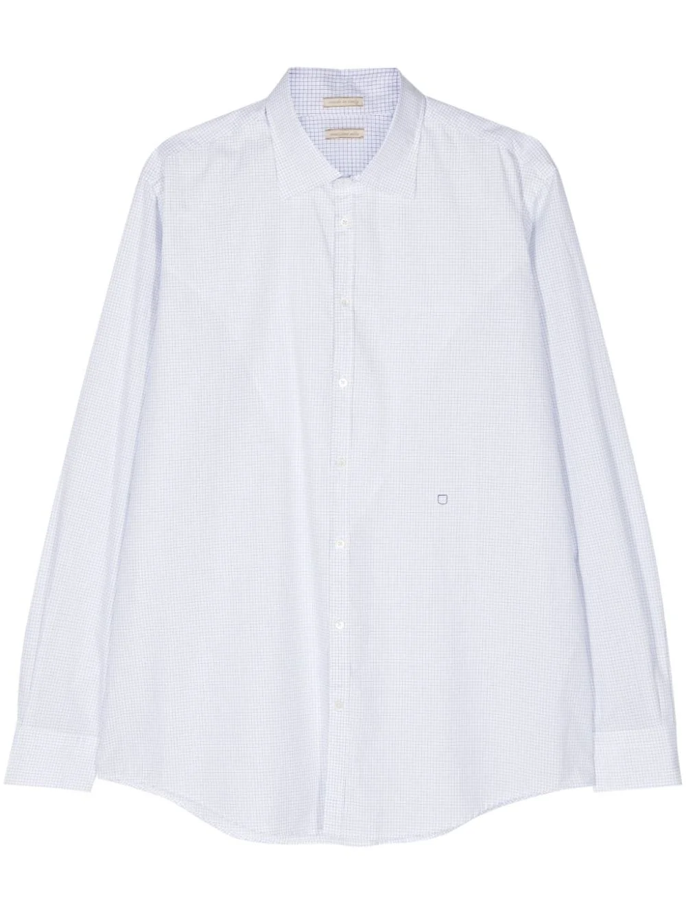 Genova checked cotton shirt Highlights - White/blue - Cotton - Poplin texture - Check pattern - Pleat detailing at the sleeves - Embroidered logo to the front - Classic collar - Long sleeves - Buttoned cuffs - Curved hem - Unlined - Front button fastening Imported Composition Lining: Cotton 100% Outer: Cotton 100%