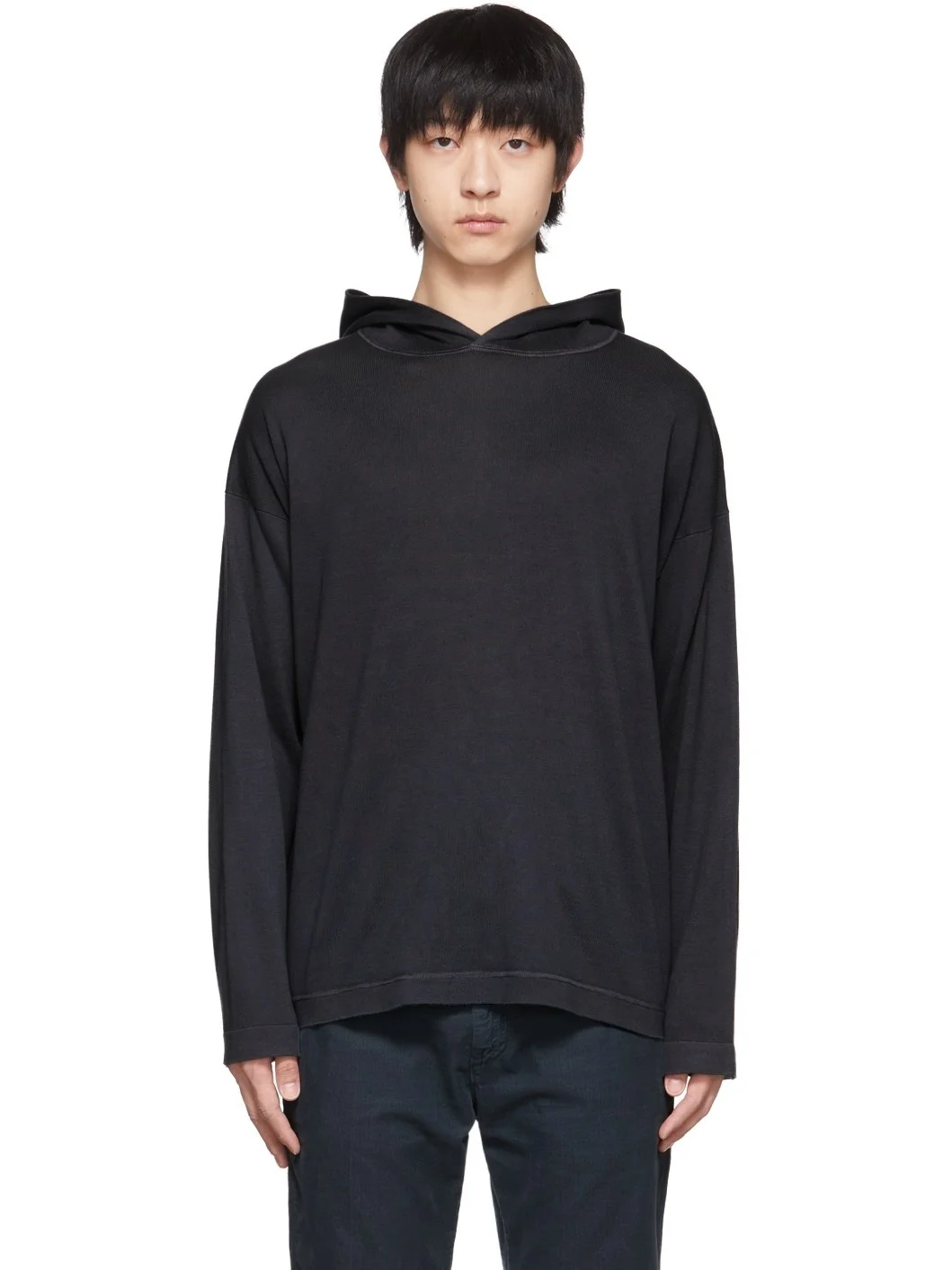 Knit cotton and cashmere-blend hoodie. Dropped shoulders. Supplier color: Washed black 85% cotton, 15% cashmere. Made in Italy 221846M202003