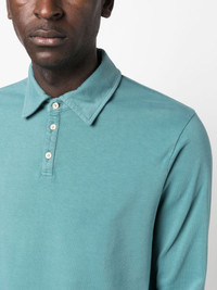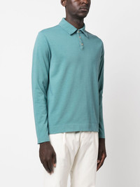 long-sleeved cotton polo shirt Highlights - Sea blue - Cotton - Tonal stitching - Polo collar - Front button placket - Long sleeves - Straight hem Made in Italy Composition Cotton 100% SIZE & FIT Model measurements Height 6 ft 2 in(1.87 m) Bust/Chest 36.41 in(92.5 cm) Hips 37 in(94 cm) Waist 29.52 in(75 cm) FittingInformation Designed for a relaxed fit, this polo shirt offers comfort and movement Made from a midweight non-stretch fabric, this piece offers minimal elasticity when worn