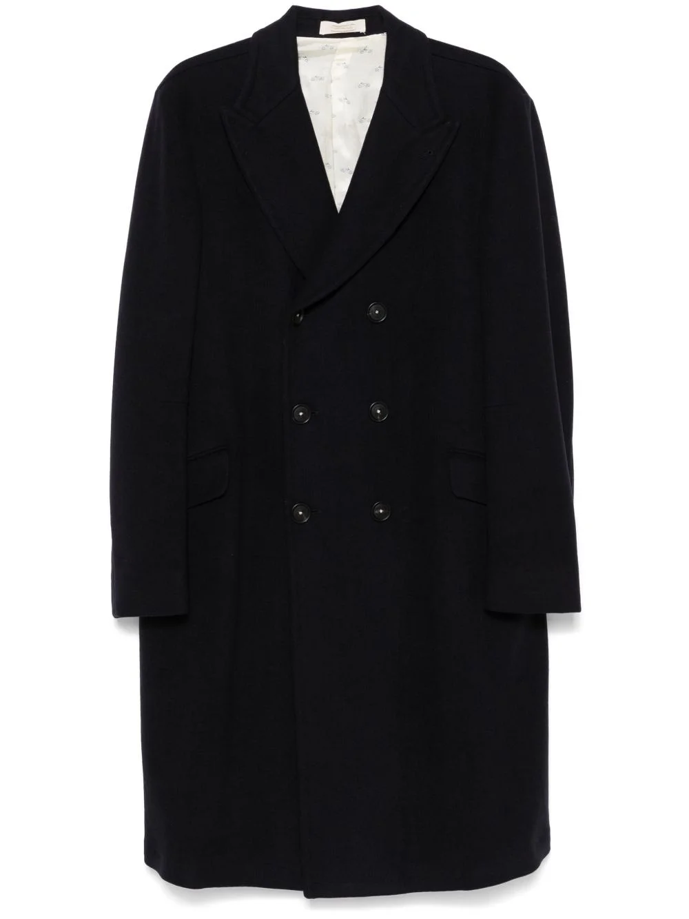Dodge coat Highlights - Midnight blue - Cashmere - Felted - Double-breasted button fastening - Peak lapels - Long sleeves - Logo tag - Two side flap pockets - Central rear vent - Multiple internal slip pockets - Car-print lining - Straight hem Made in Italy Composition Lining: Viscose 100% Outer: Cashmere 100% Washing instructions Dry Clean Only