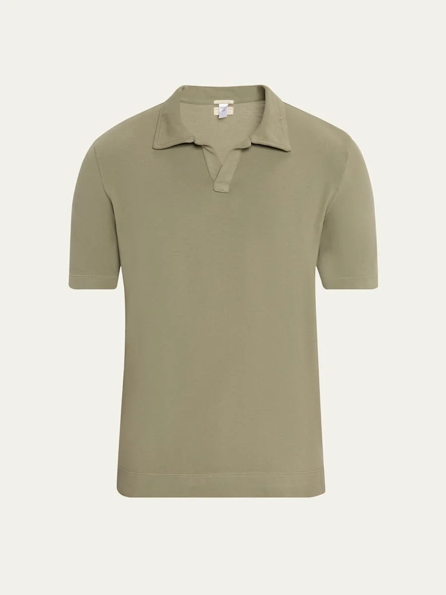 Massimo Alba "Aruba" polo shirt in cotton Johnny collar Short sleeves Vented sides Pullover style Cotton Made in Italy Model is 6'1"/185cm. Online Inquiries: BGS21_NCZ1Q| Store Inquiries: #4751807