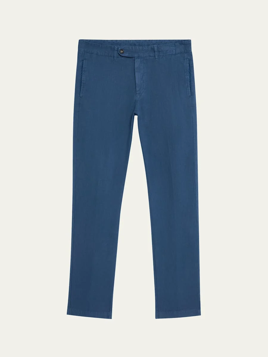 Massimo Alba trousers in cotton and linen Regular rise Flat front Four-pocket style Straight legs Full length Extended button-zip front Belt loops Cotton/linen Made in Italy Model is 6'1"/185cm. Online Inquiries: BGS21_NBZDL| Store Inquiries: #4749378