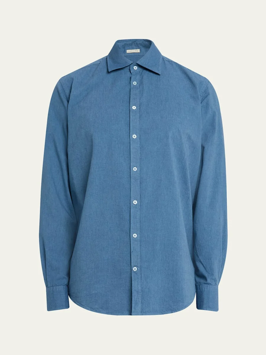 Massimo Alba "Genova" cotton chambray shirt Spread collar; button-front Long sleeves with button cuffs Classic fit Cotton Made in Italy Online Inquiries: BGS21_NDQ04| Store Inquiries: #5063709