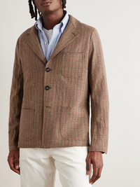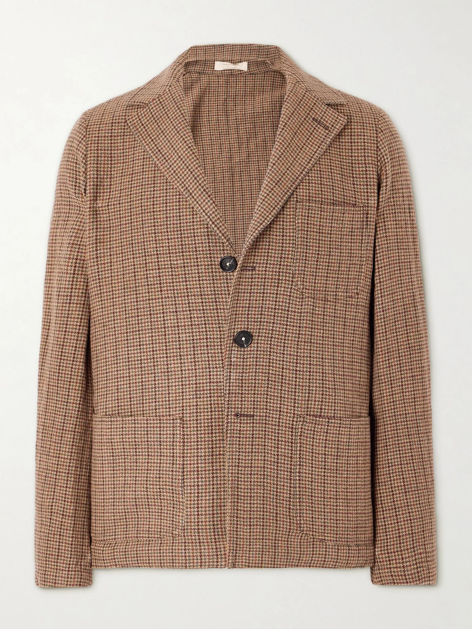 Massimo Alba adheres to the Italian ideal of sprezzatura, or a relaxed elegance. The type you can wear with jeans or fatigues, this 'Baglietto' blazer is tailored from soft wool-blend in a heritage houndstooth pattern and has an unstructured and unlined construction to keep it cool and comfortable. Size & Fit - Fits true to size. Take your normal size - Designed for a boxy fit - Internal shoulder pads - Mid-weight, non-stretchy fabric - Model is shown wearing an IT 48 - Model measures: chest 38"/ 96cm, height 6'0"/ 183cm Details & Care - Beige, green and burgundy wool-blend - Notch lapels, functioning buttoned cuffs, chest patch pocket, two front patch pockets, double vent, internal pockets, unlined - Three button fastening - 53% virgin wool, 30% wool, 16% polyamide, 1% elastane; buttons: 100% horn (Buffalo) - Dry clean