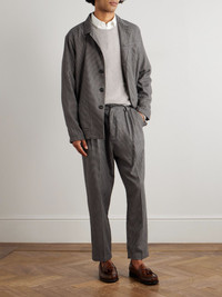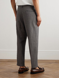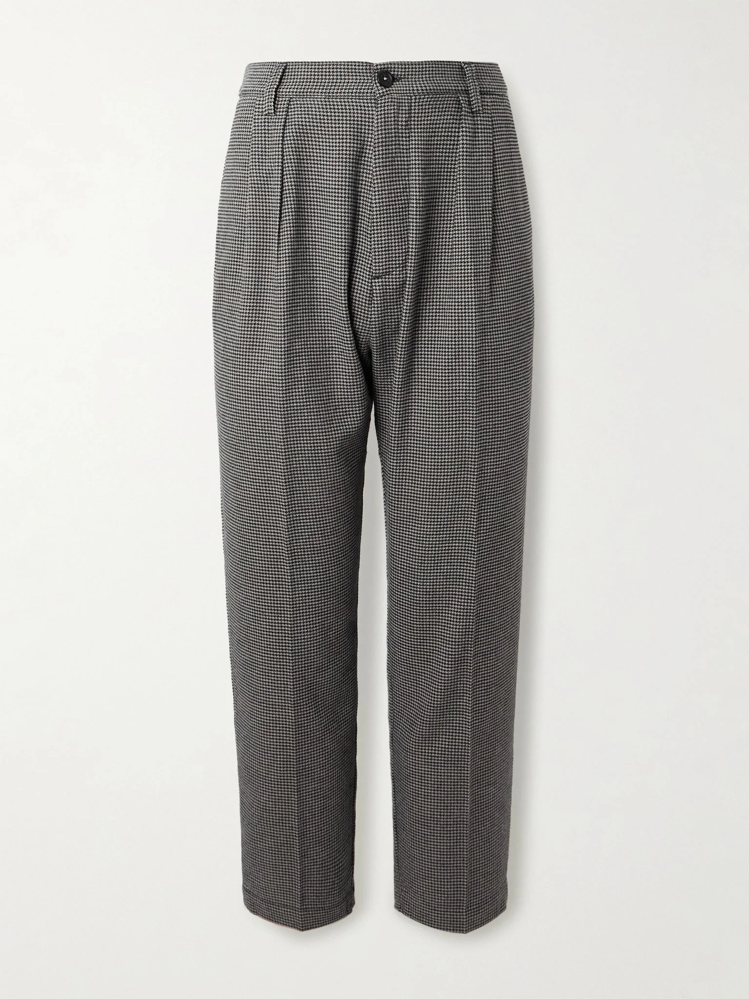 Stan Straight-Leg Pleated Houndstooth Cotton Trousers Gray