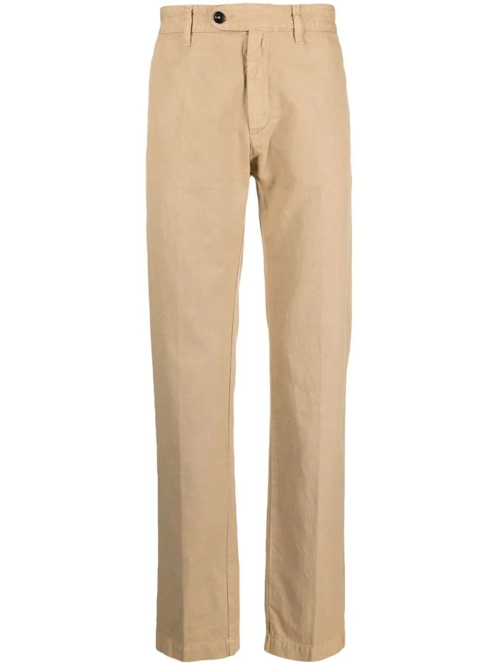 straight-leg chino trousers beige cotton-linen blend belt loops off-centre front button fastening concealed front zip fastening straight leg two rear welt pockets Made in Italy Composition Lining: Cotton 100% Outer: Cotton 72%, Linen/Flax 28%