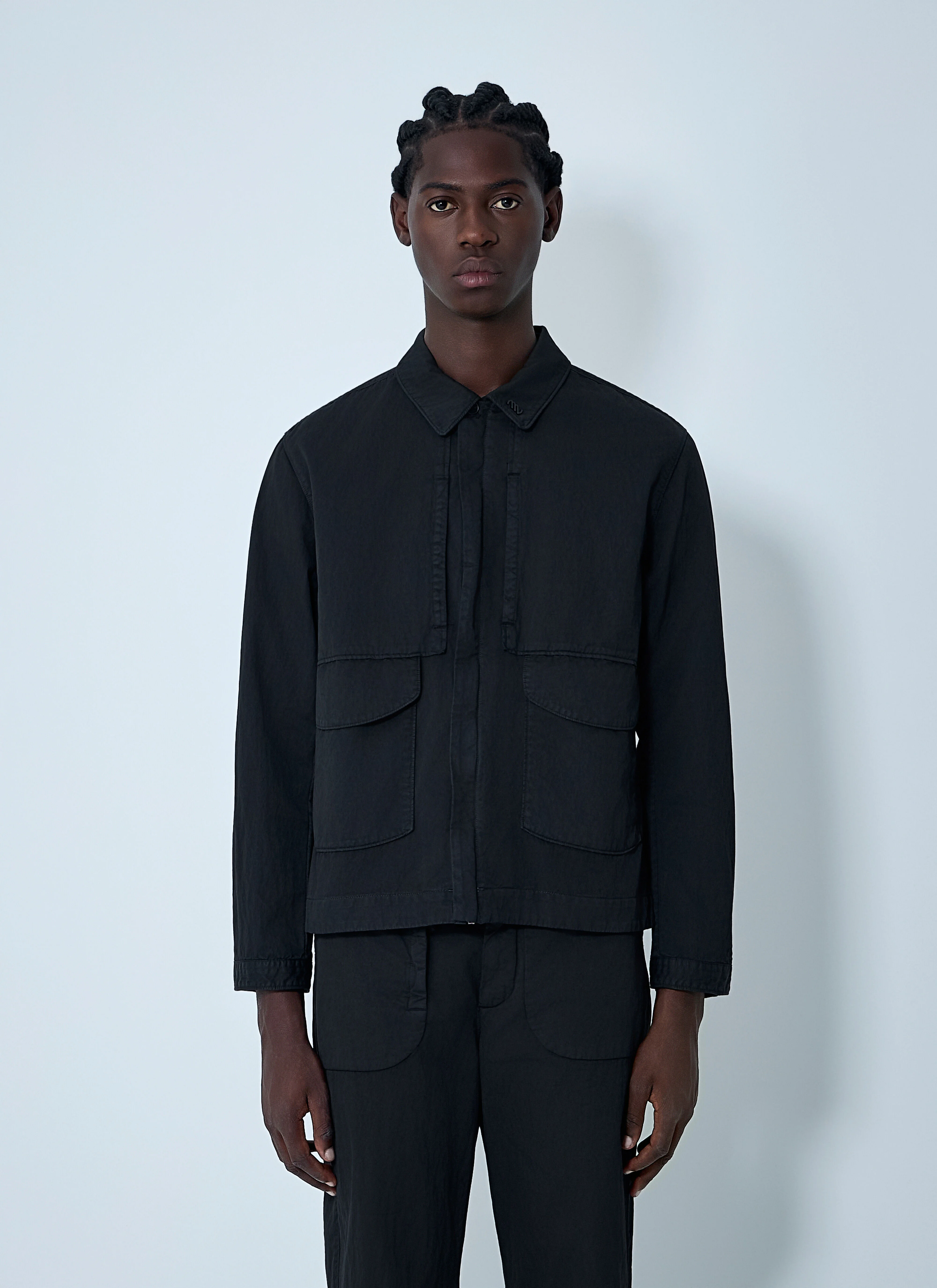 Gabardine overshirt in cotton weave. - Classic collar - Front zip fastening - Long sleeves - Multiple pockets - 55% Cotton, 45% Polyamide. Dry clean - Color: Black - Code: 19MMOS007A000012G 999