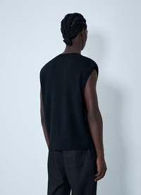 Crewneck sweater in wool-blend knit. - Crewneck - Detachable long sleeves - Logo motif at hem - Rib trims - 55% Wool, 45% Polyester. Hand wash - Color: Black - Code: 19MMKN033A006595A 999
