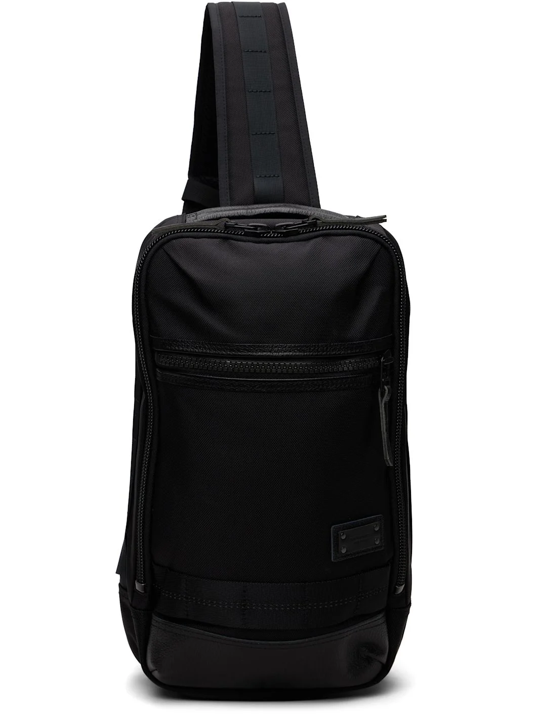 Mastertex-09™ CORDURA BALLISTIC® nylon canvas messenger bag. · L-vent® waterproof and water-repellent · Adjustable and semi-detachable shoulder strap · Pebble-grained leather carry handle · Logo plaque and zip pocket at face · Zip pockets at back face · Two-way zip closure · Zip pockets and tablet compartment at interior · Nylon canvas lining · H14.5" x W9" x D4" Supplier color: Black 100% nylon. Made in Japan 252401M170009