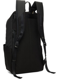 Waterproof coated satin and CORDURA BALLISTIC® nylon canvas backpack. · Carry handle · Adjustable padded M-STRAP™ shoulder straps · Loops at shoulder straps · Zip compartment and leather logo patch at face · Patch pocket at sides · Zip pocket at padded back face · Two-way zip closure · Padded laptop compartment at interior · Canvas lining · H19" x W12" x D4.5" Supplier color: Black Body 1: 100% polyester. Body 2: 100% polyurethane. Body 3: 100% nylon. Trim: 100% leather. Lining: 100% nylon. Made in Japan 252401M166005