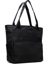 Coated CORDURA Ballistic® nylon canvas tote. · Vegetable-tanned leather trim throughout · Twin rolled carry handles · Adjustable and detachable crossbody strap · Logo patch and zip pocket at face · Luggage strap and D-rings at back face · Patch pocket at back face and sides · Two-way zip closure · Laptop compartment and patch pockets at interior · Canvas lining · H12.5" x W16.75" x D5" Supplier color: Black Body: 100% nylon. Trim: 100% leather. Lining: 100% nylon. Made in Japan 252401M172002
