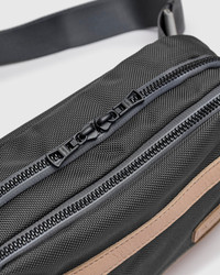 Crafted from Cordura's 1680 Denier Ballistic nylon, these bags are built to withstand extreme conditions, offering anti-abrasive, mildew-resistant, UV-protective, and water-repellent properties. The bag includes a main storage compartment with an interior mesh pocket and an additional pocket for a smartphone. This versatile, lightweight travel bag is equipped with an adjustable waist/shoulder strap and sleek tonal detailing. - Cordura 1680 Denier Ballistic Nylon fabric - Japanese oiled cow leather trim - Main storage compartment - Interior mesh zipper pocket - Front quick access pocket - Adjustable shoulder/waist strap - Metaluxe Tough zippers - 100% nylon - Made in Japan - Model no: 43454 One size. Approximately 430g W 210 H 155 D 50 MM
