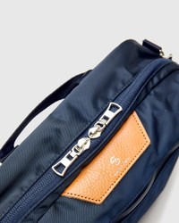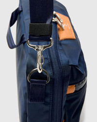 - 100d nylon twill (PVC coating) - Large central compartment with inner pocket - Secondary front zip compartment - Adjustable shoulder strap - Japanese YKK zippers throughout - Body: 100% nylon - Trim: oiled cow leather - Made in Japan - Model no: 02400 One size. Approximately 8"W x 12.5"H x 2"D