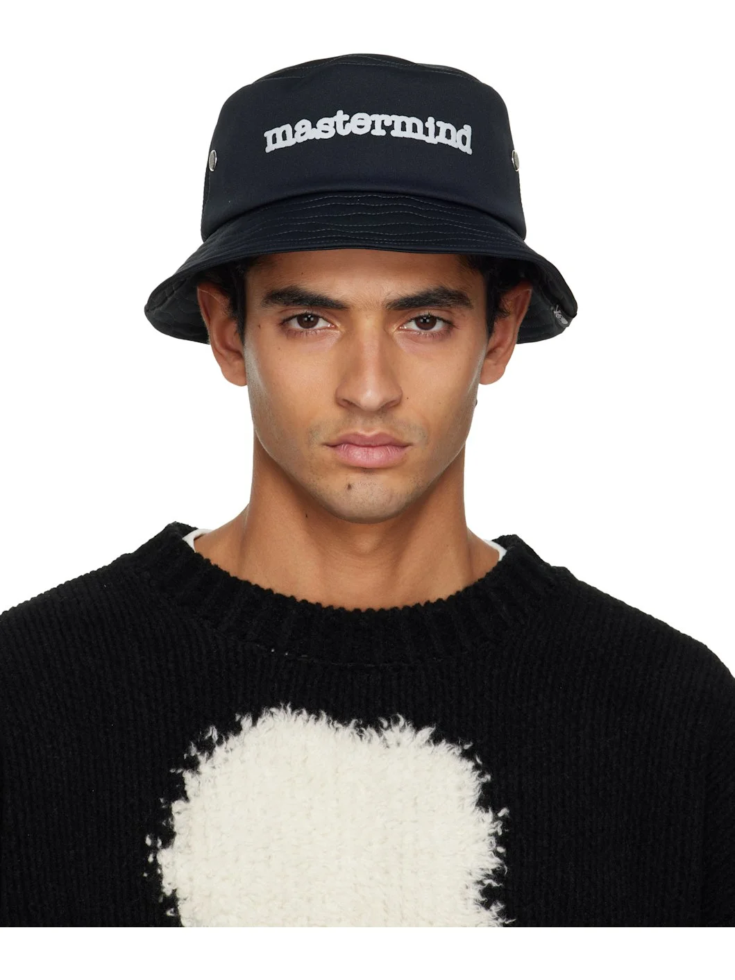 Plain-woven bucket hat. · Logo printed at face · Logo flag at quilted brim · Metal eyelets at sides · Poplin lining Supplier color: Black 100% polyester. Made in Japan 252563M140000